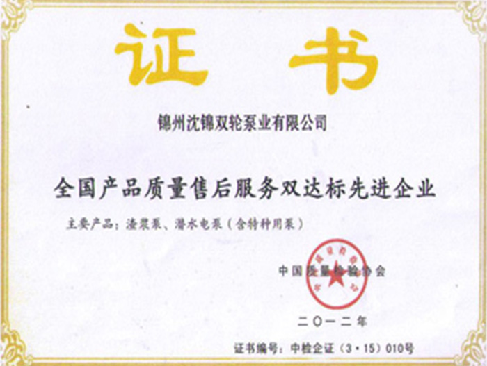 全國產(chǎn)品質(zhì)量售后服務雙達標先進企業(yè)
