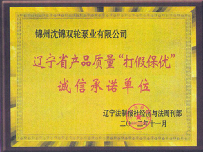 遼寧省產(chǎn)品質(zhì)量“打假保優(yōu)”誠信承諾單位